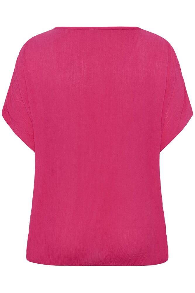 Blouse heeft een ronde halslijn en elastiek onderin de zoom.