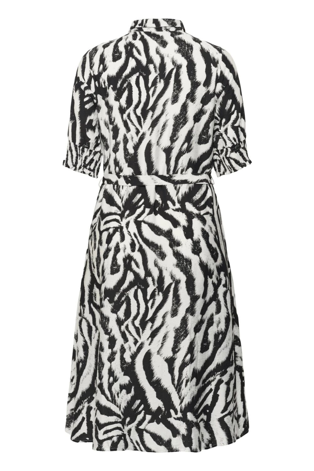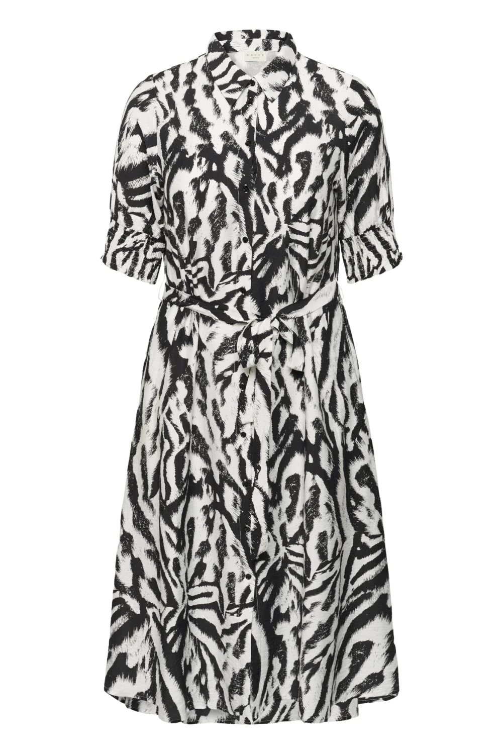 De Kchalia overhemdjurk van Kaffe Curve heeft een licht en elegant ontwerp met een klassieke overhemdkraag en een knoopsluiting aan de voorkant. De jurk heeft een losse en comfortabele pasvorm die mooi langs het lichaam valt en een ontspannen maar stijlvolle look geeft. Perfect om zowel gesloten als jurk te dragen, of open als een lichte laag over een broek.