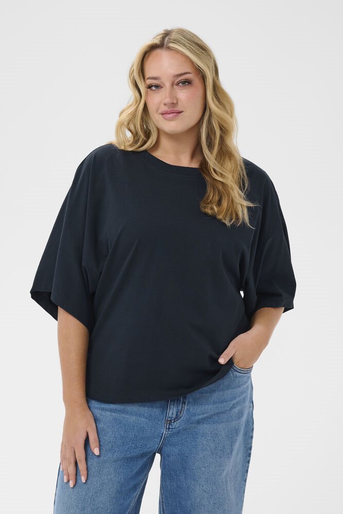 T-shirt van Kaffe Curve met een O-halslijn en met wijde korte mouwen