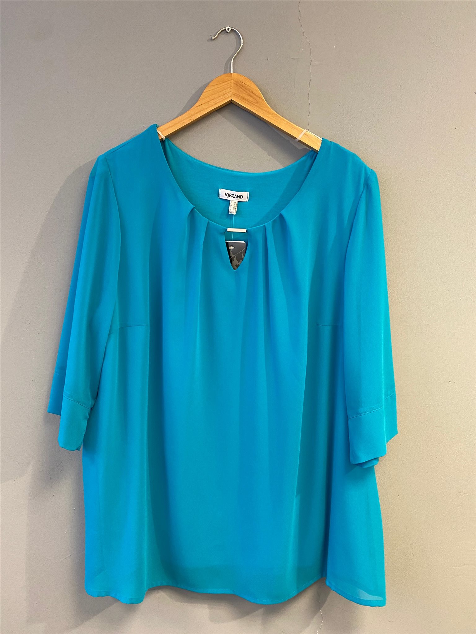 Blouse tuniek met een ronde halslijn en een decoratief element. De blouse is iets groener dan op de foto.