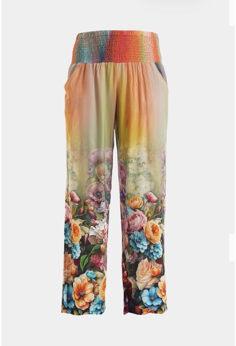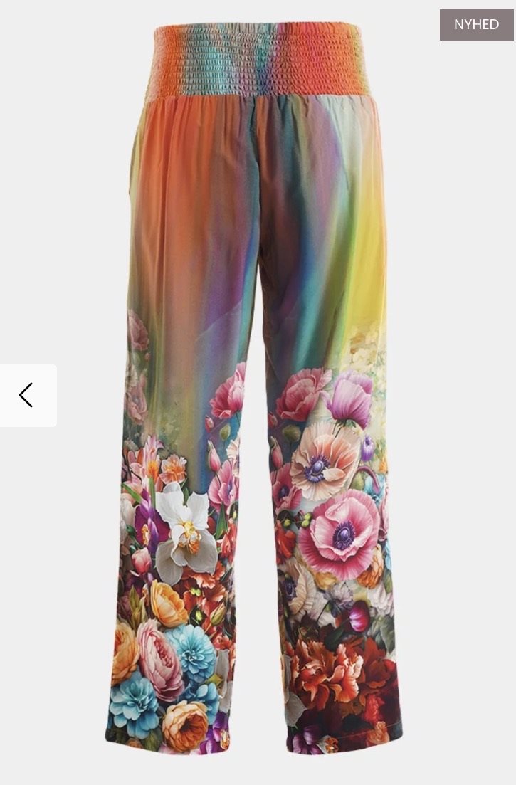 Een kleurrijke en opvallende broek van Studio met een prachtige bloemenprint en levendige kleurovergangen. De lichte viscose valt soepel en geeft een elegante en ontspannen look, terwijl de brede elastische tailleband zorgt voor een comfortabele en flexibele pasvorm. Een statement piece dat je kunt combineren met een simpele top of met de bijpassende top voor een complete look.