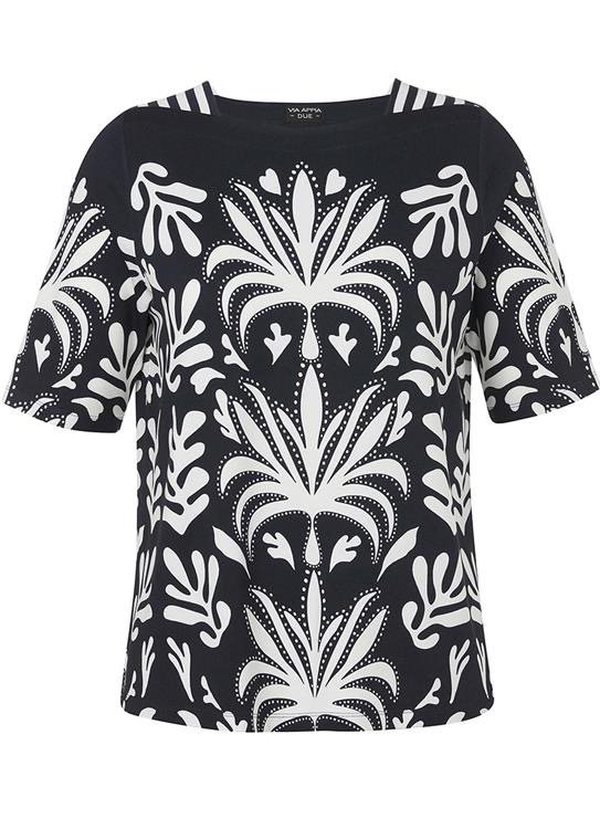 T-shirt van Via Appia Due met een vierkante halslijn en korte mouwen