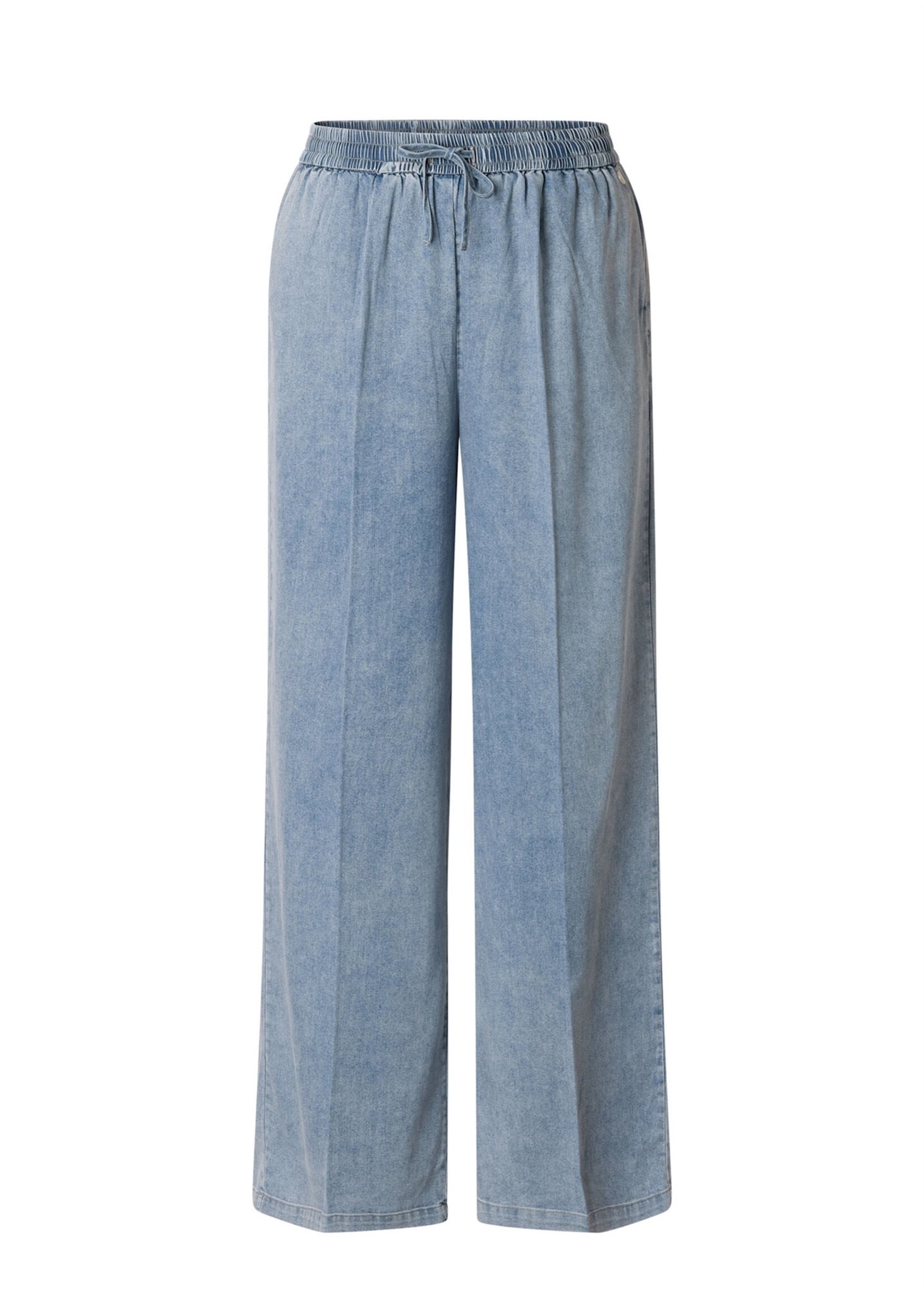 Deze broek heeft een comfortabele losse pasvorm en is gemaakt van soepel denimstof met stretch. De elastische tailleband en het trekkoord zorgen voor een ontspannen pasvorm. Met handige zijzakken en een luchtige uitstraling.