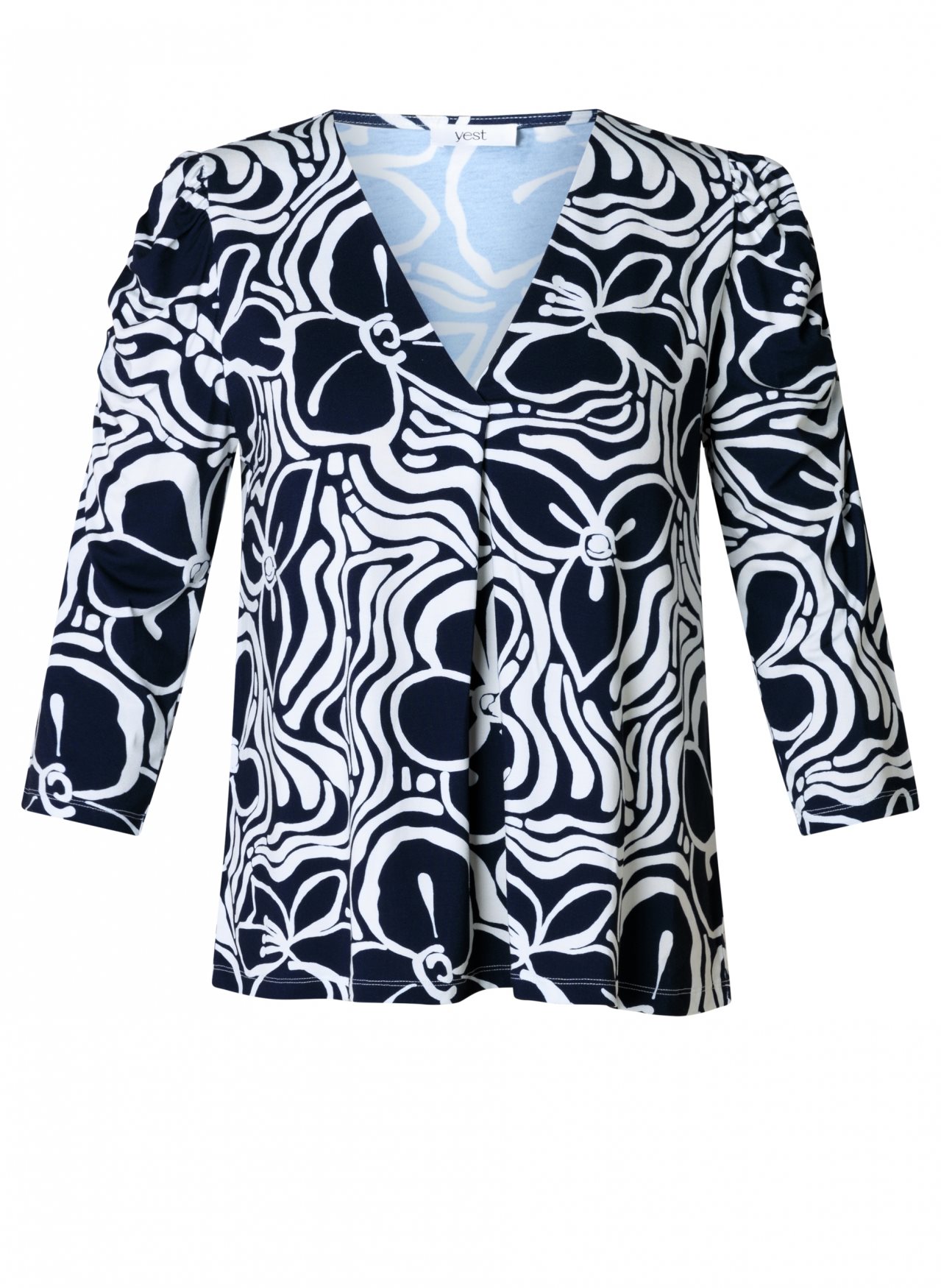 Deze top Jovita is gemaakt van een zachte Ecovero-viscosemix met elastane, waardoor hij soepel en comfortabel draagt. De geplooide schouders en mouwen geven het model extra vorm. De V-hals met subtiele plooi werkt flatterend. Verkrijgbaar in twee frisse kleurvarianten.