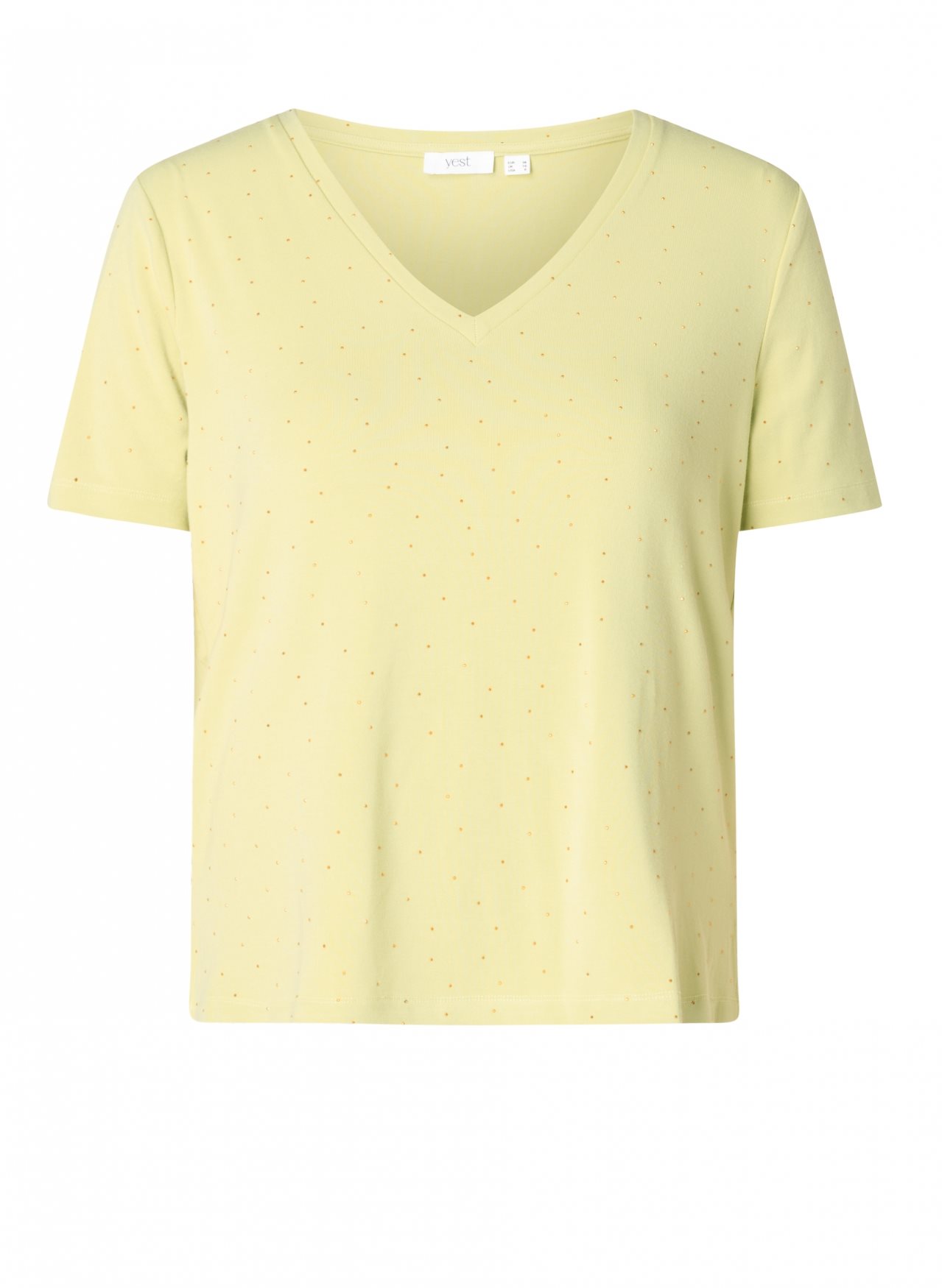 Dit T-shirt combineert comfort en uitstraling in één. De luchtige jerseykwaliteit voelt prettig op de huid, terwijl de subtiele sparkles zorgen voor een lichte glans. Met de V-hals en regular fit is het een perfecte basic voor elke dag.